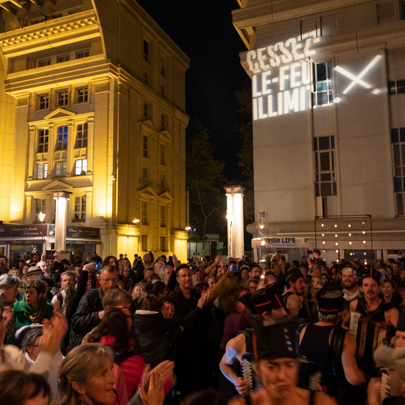 dans l’ordinaire urbain, au coin d’une rue, sur une place, sur une façade, dans un « quartier politique de la ville », un centre délaissé, un site patrimonial ou ailleurs, pour 30, 300, 3000 personnes, en limitant les coûts techniques et l’impact environnemental…